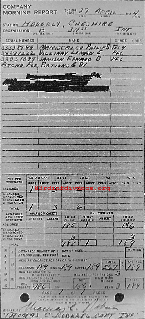 | Unit | 331st Infantry Regiment, 83rd Infantry Division |
