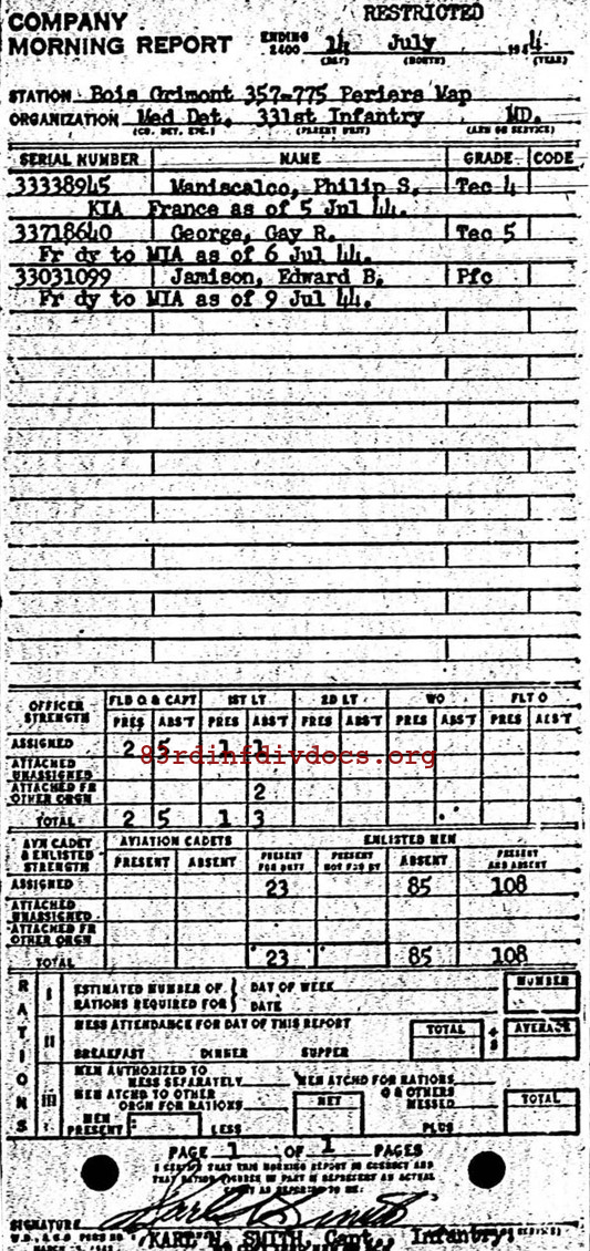| 1944-07-14 | TEC4 | Killed in action on July 5, 1944 | MEDDET / 331 | view page | |