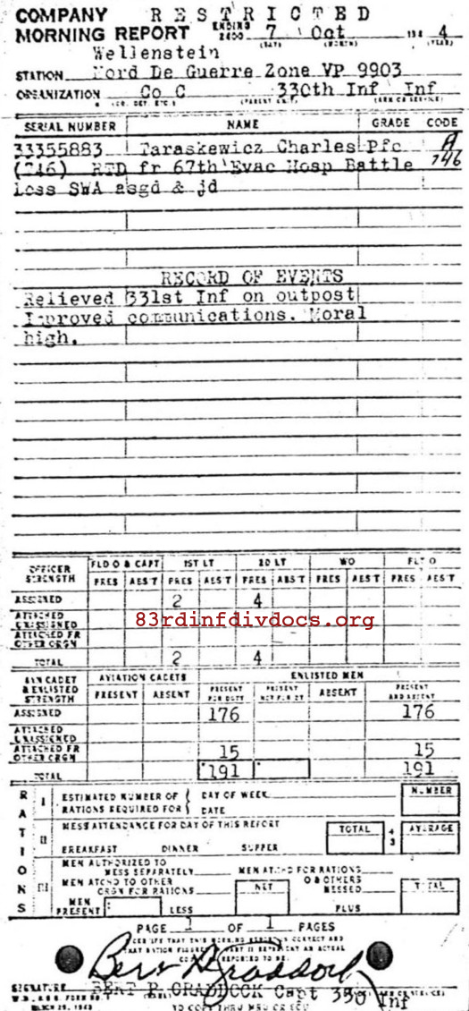 | Unit | C Company, 330th Infantry Regiment, 83rd Infantry Division |