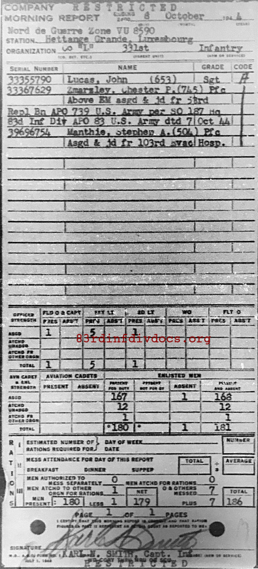 | Unit | L Company, 331st Infantry Regiment, 83rd Infantry Division |