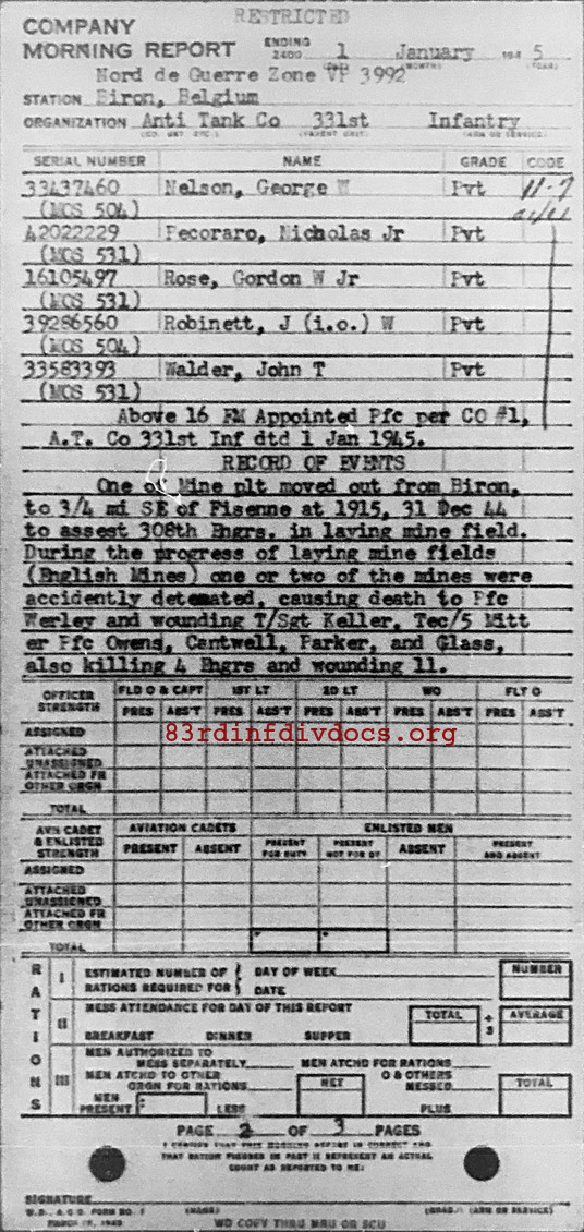 | 1944-12-17 | PFC | Listed in Record of Events for December 17, 1944 | ATCO / 331 | view page | |