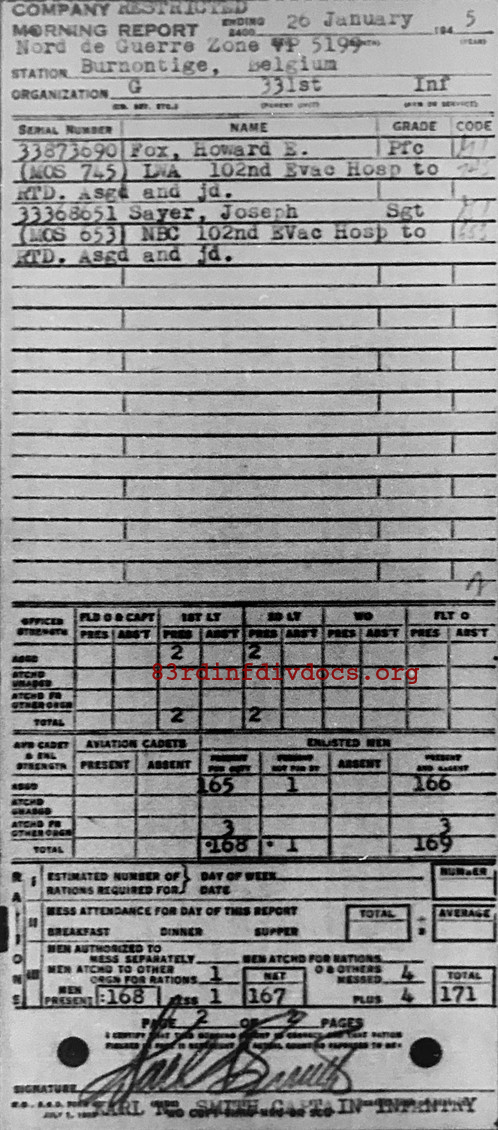 | Unit | 331st Infantry Regiment, 83rd Infantry Division |