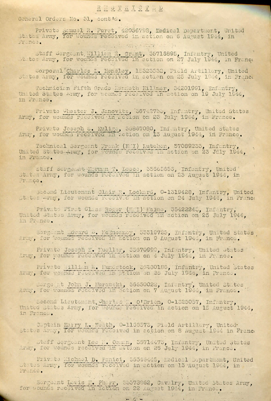 | 1944-12-11 | SGT | Killed in action on December 10, 1944 | 651 | 83RCNTRP | view page |