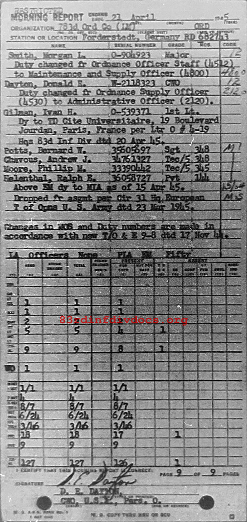 | Unit | 783rd Ordnance Company, 83rd Infantry Division |