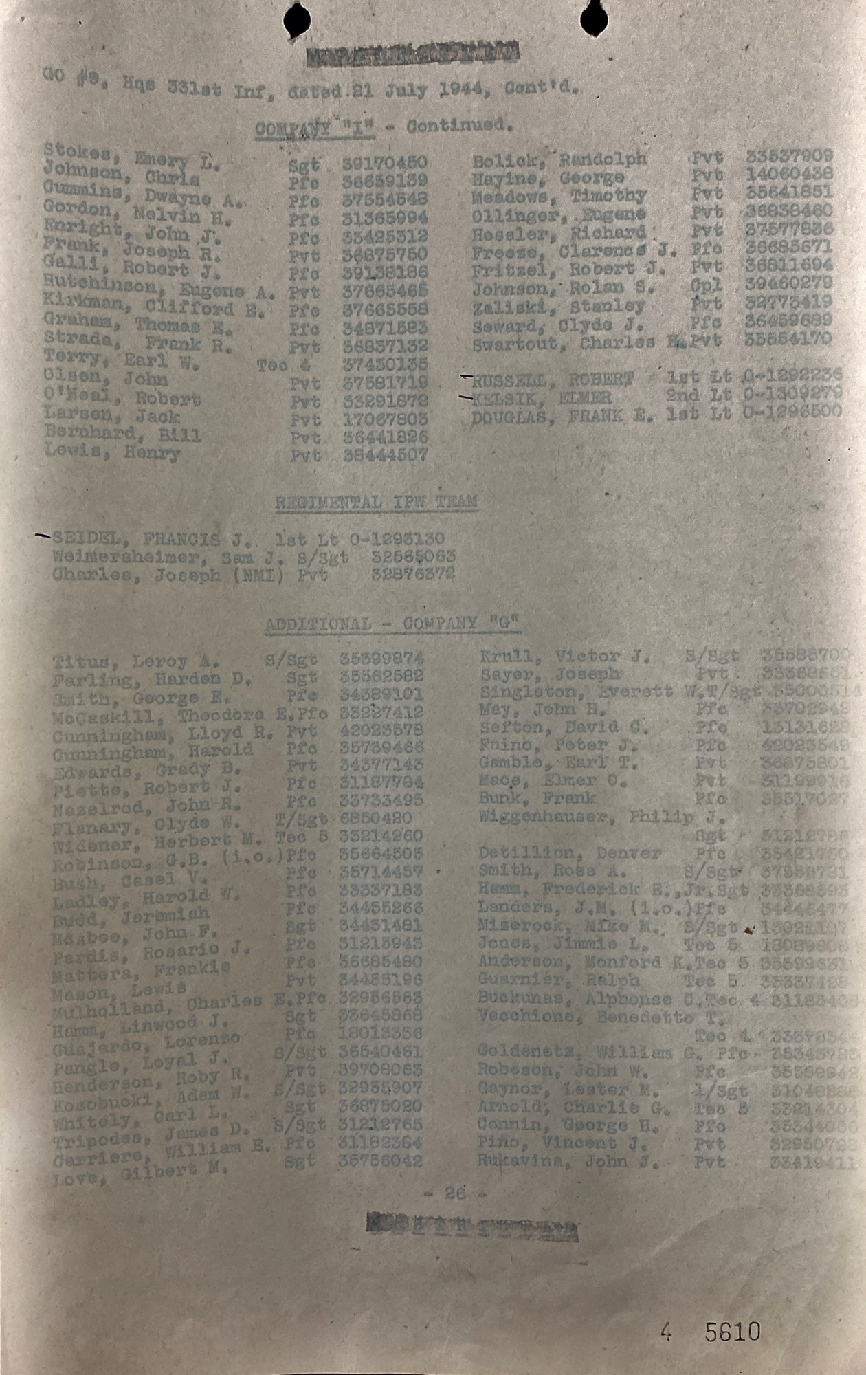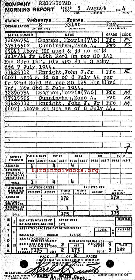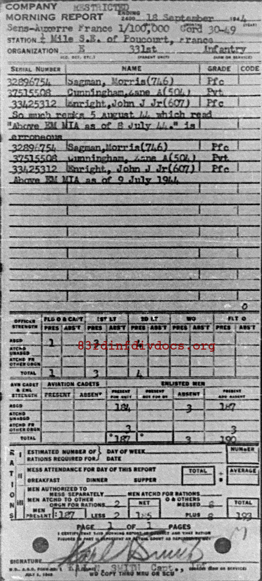 | 1944-09-18 | PFC | Missing in action as of July 9, 1944 | 607 | E / 331 | view page |