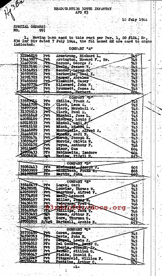 | 1944-07-16 | PFC | Missing in action as of July 12, 1944 | HQCO3BN / 329 | view page | |