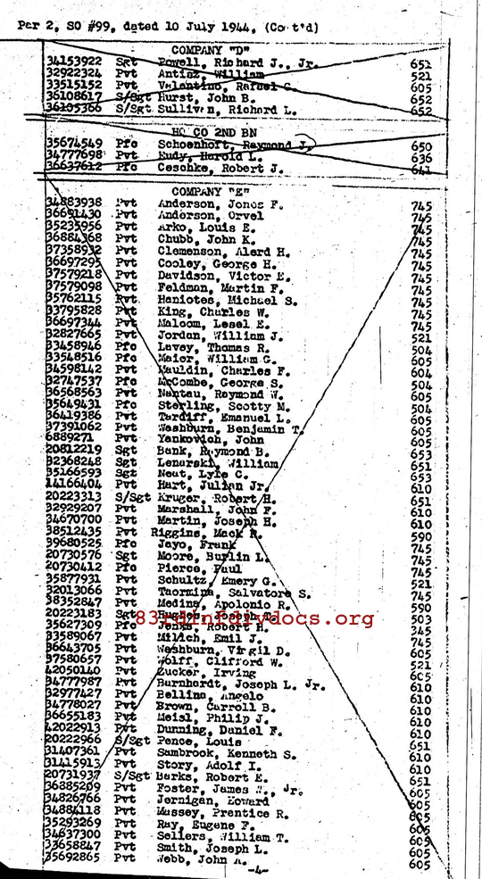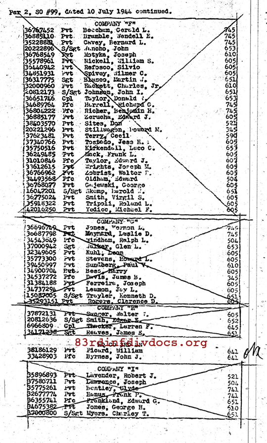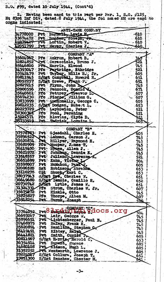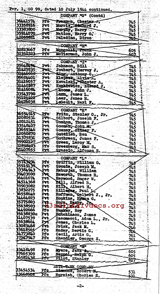 | 1944-12-21 | PFC | Killed in action on July 11, 1944, which corrects MR of July 16, 1944 | 504 | HQCO3BN / 329 | view page |