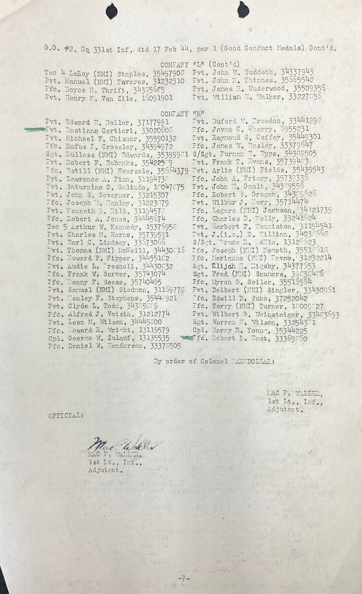 | Unit | M Company, 331st Infantry Regiment, 83rd Infantry Division |