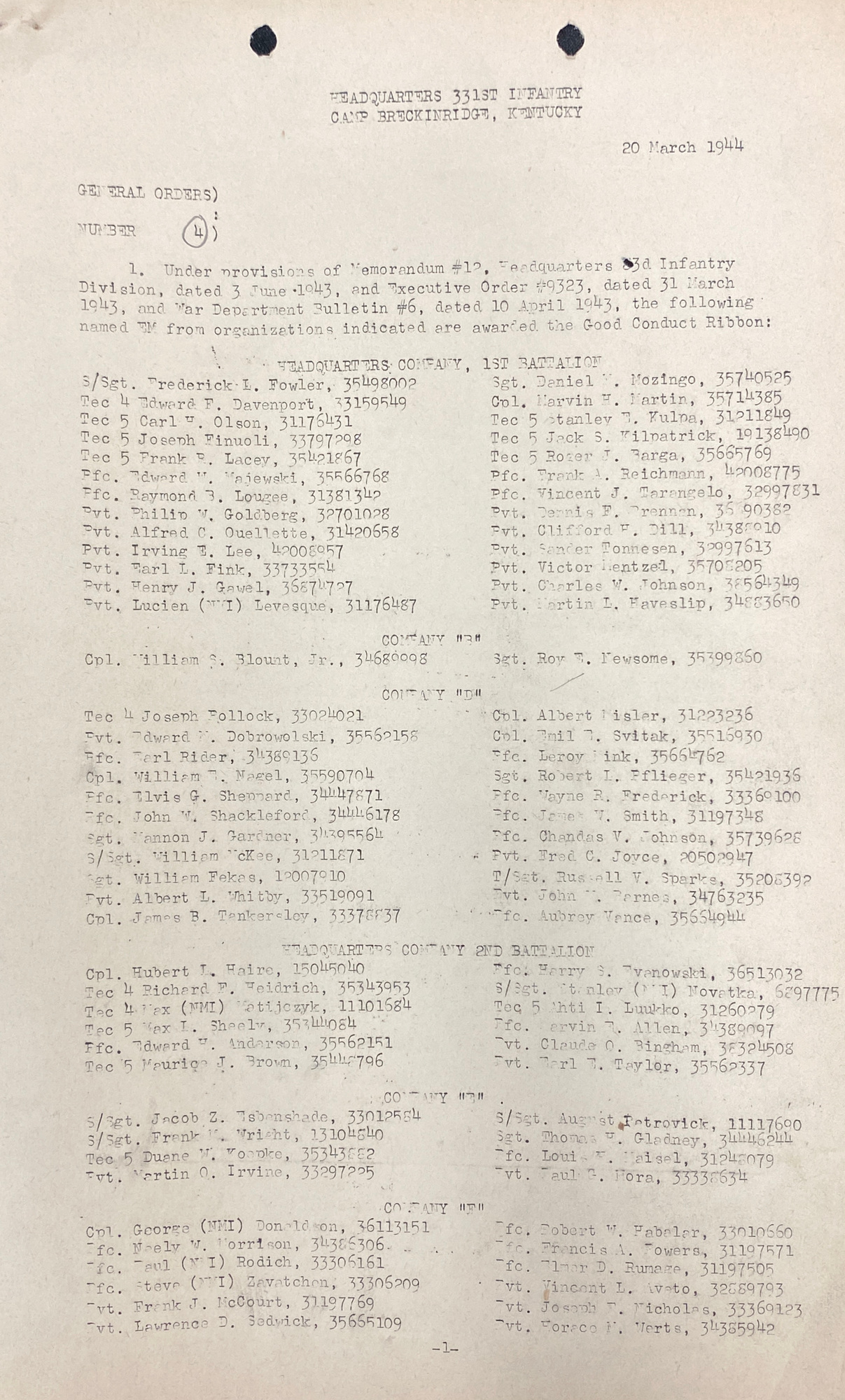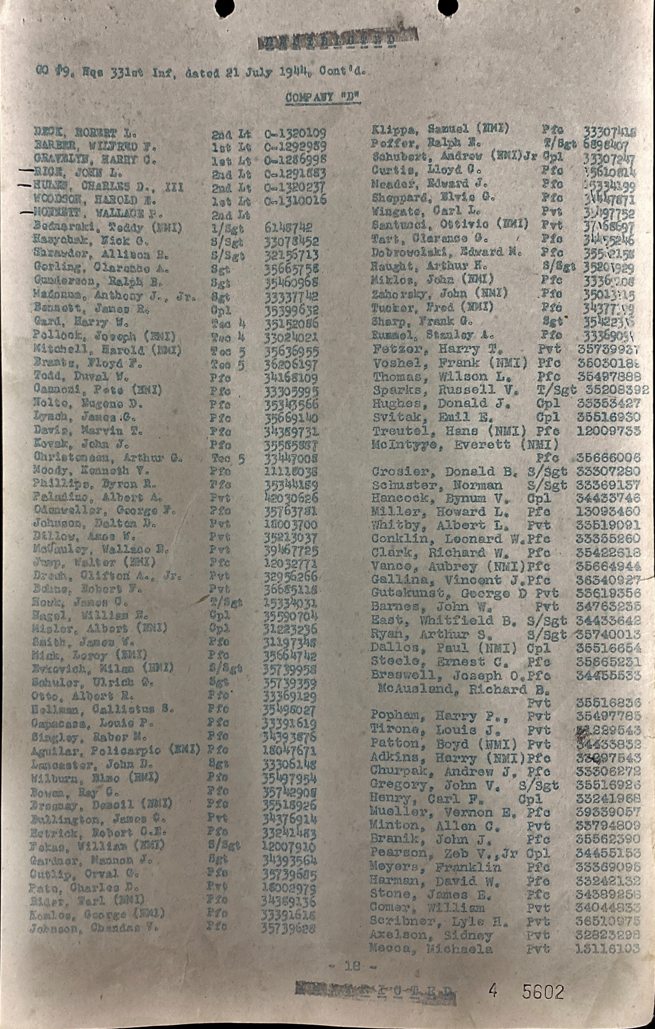 | Unit | HQ Platoon, D Company, 331st Infantry Regiment, 83rd Infantry Division |