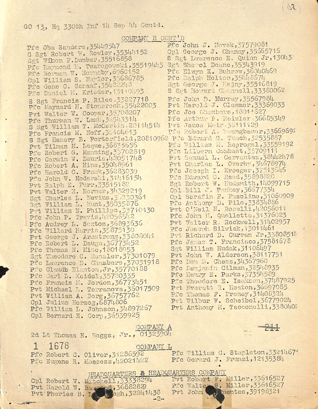 | Unit | H Company, 330th Infantry Regiment, 83rd Infantry Division |