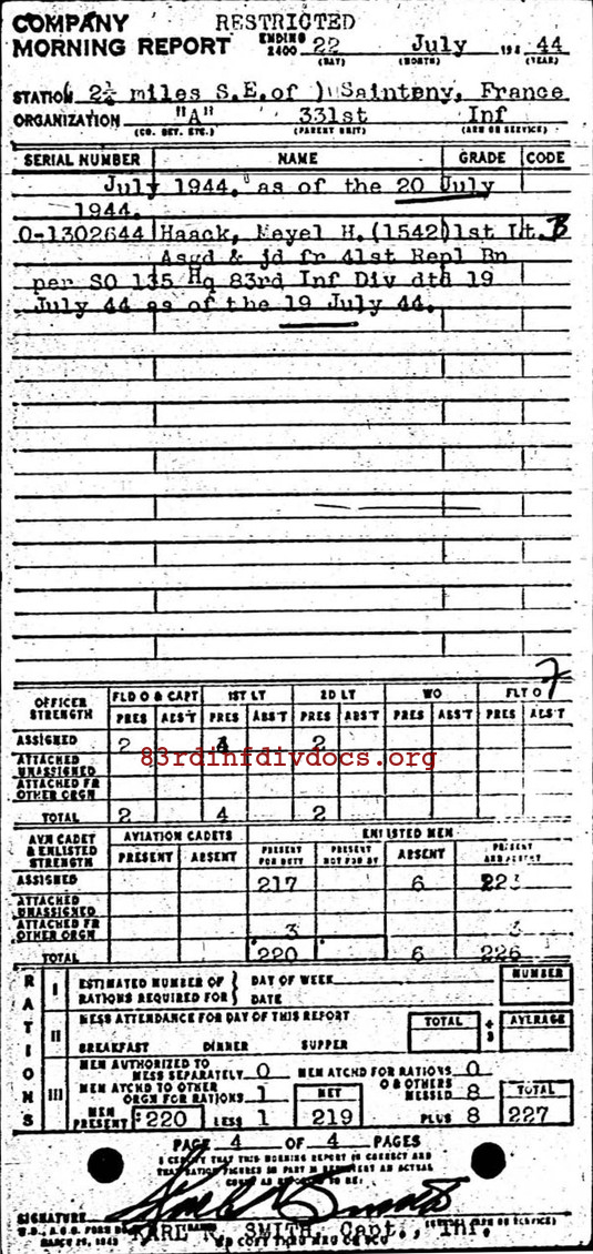 | Unit | A Company, 331st Infantry Regiment, 83rd Infantry Division |