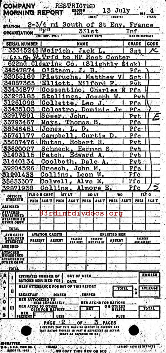 | Unit | 331st Infantry Regiment, 83rd Infantry Division |
