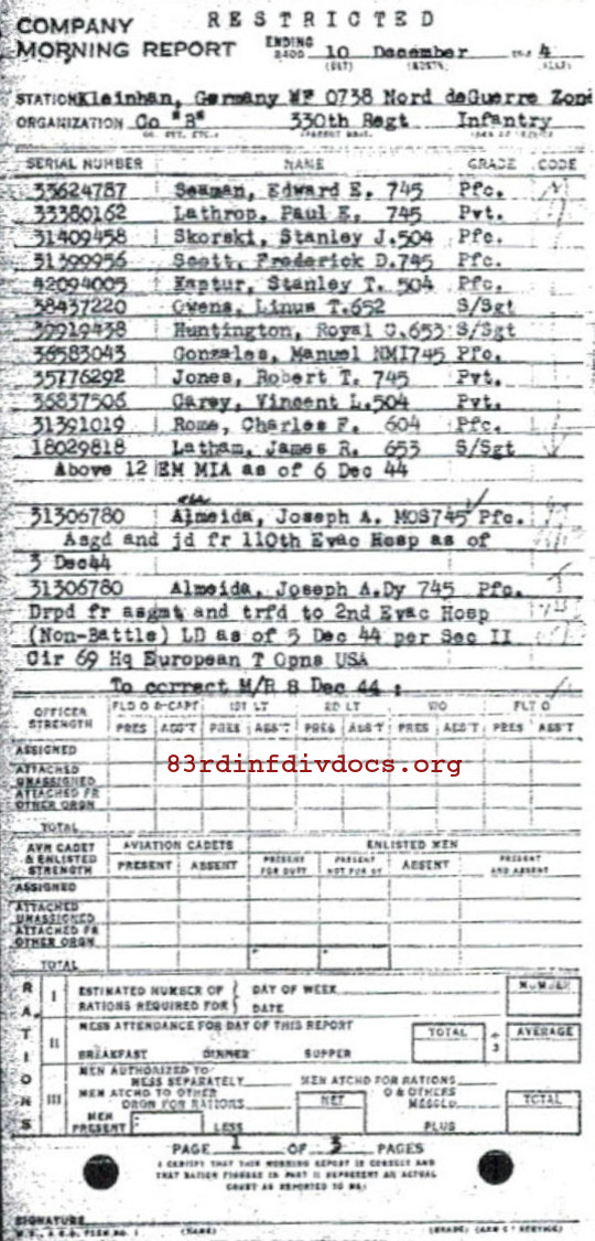 | 1944-12-10 | PFC | Missing in action as of December 6, 1944 | 745 | B / 330 | view page |