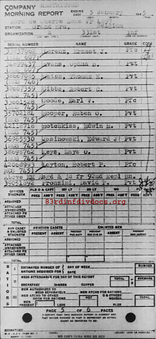 | 1945-01-05 | PFC | Assigned and joined from 92nd Replacement Battalion as of January 5, 1945 | 745 | E / 331 | view page |