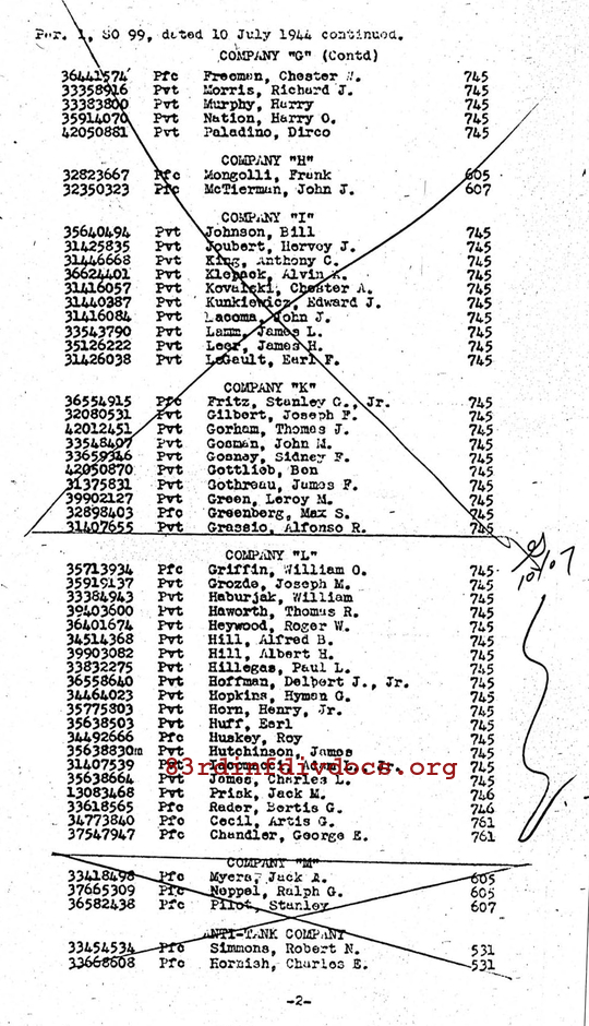 | 1944-07-08 | PVT | Assigned and joined from unknown unit as of July 8, 1944 | 745 | L / 329 | view page |
