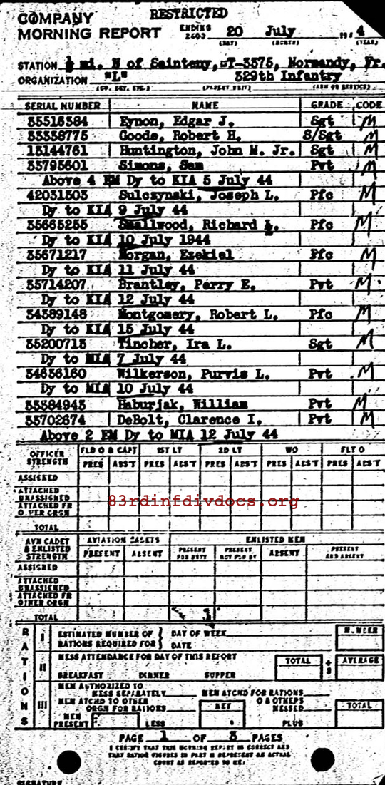 | 1944-07-20 | PVT | Missing in action as of July 12, 1944 | L / 329 | view page | |