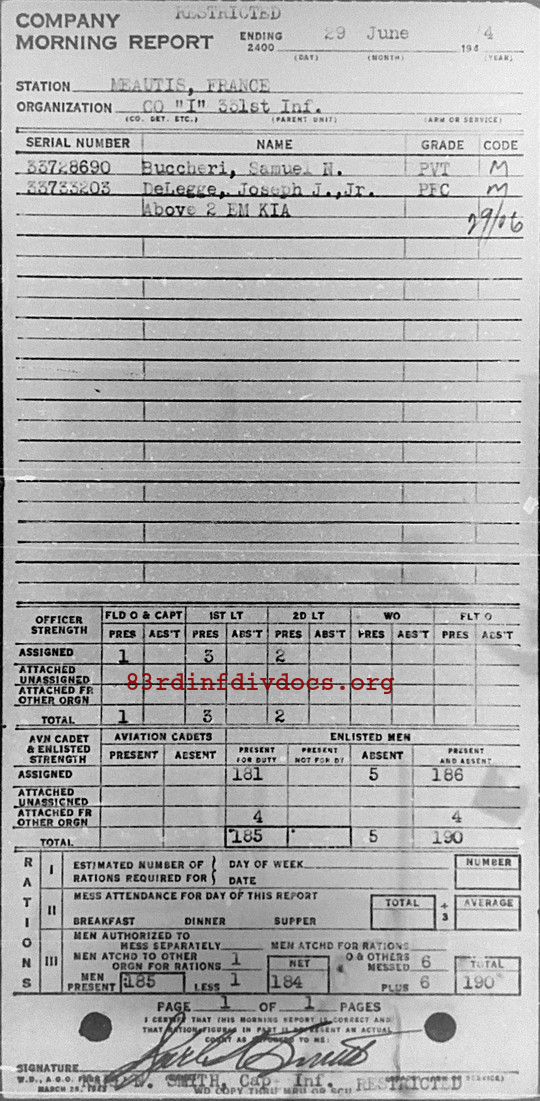 | 1944-06-29 | PVT | Killed in action on June 29, 1944 | I / 331 | view page | |