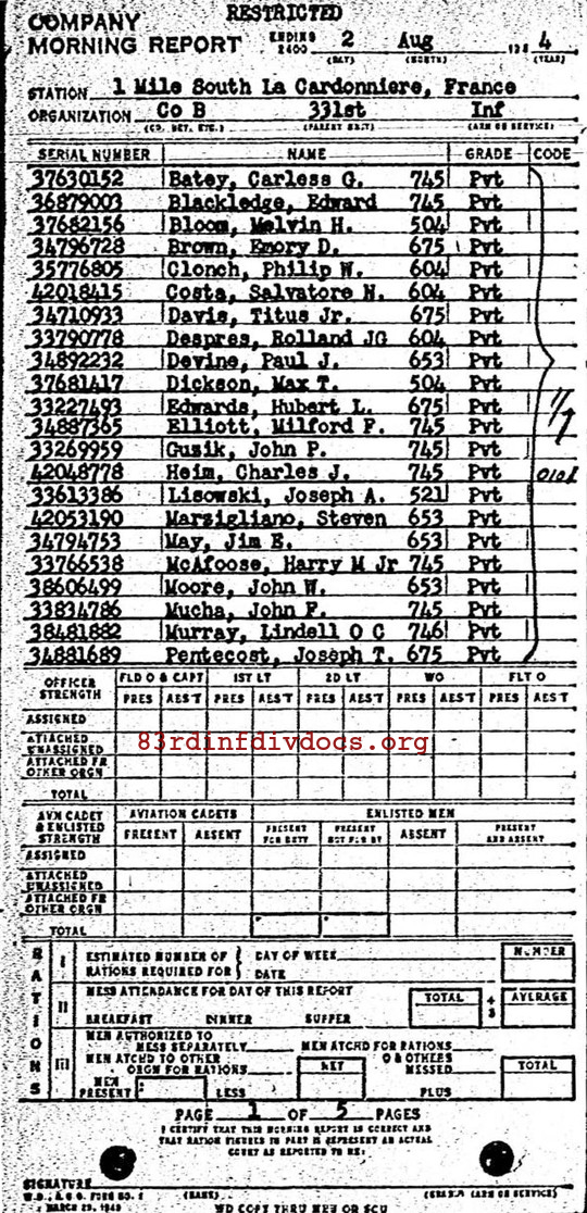 | 1944-08-18 | PFC | Killed in action on August 13, 1944 | 745 | B / 331 | view page |