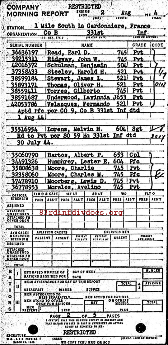 | 1944-08-02 | PVT | Promoted to Private First Class as of August 2, 1944 | 745 | B / 331 | view page |