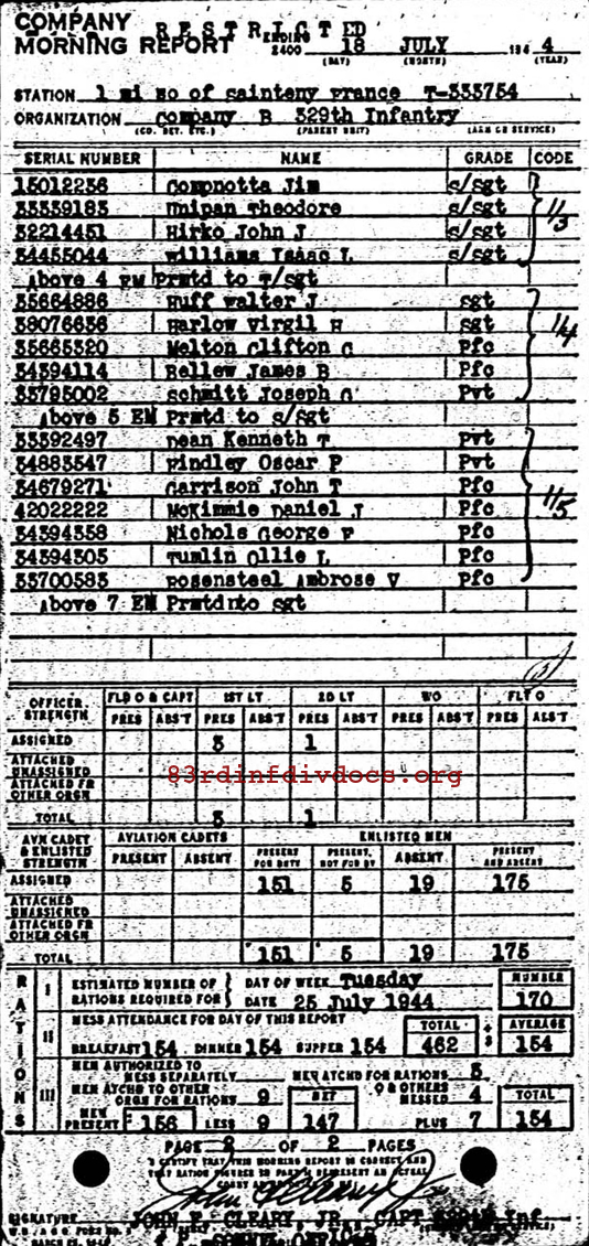 | 1944-07-18 | PVT | Promoted to Staff Sergeant as of July 18, 1944 | B / 329 | view page | |