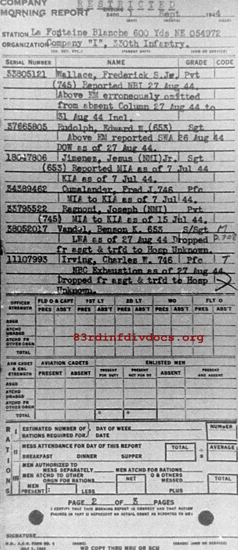 | 1944-09-01 | PVT | Killed in action on July 15, 1944 | 745 | I / 330 | view page |