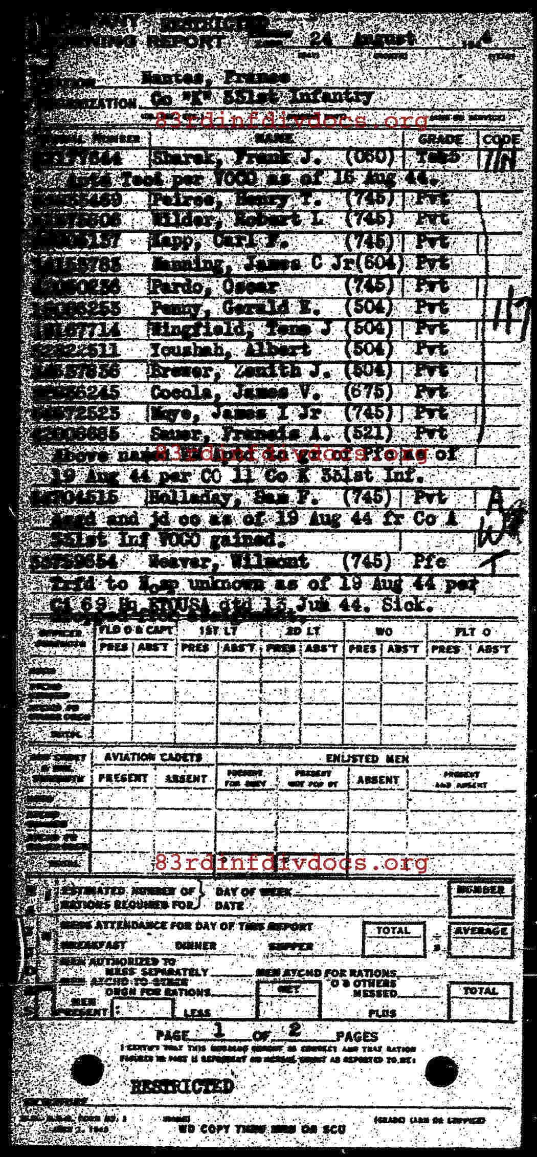 | 1944-08-24 | PVT | Promoted to Private First Class as of August 19, 1944 | 745 | K / 331 | view page |