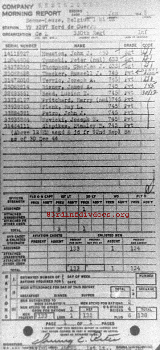 | 1945-01-01 | PVT | Assigned and joined from 92nd Replacement Battalion as of December 30, 1944 | 745 | L / 330 | view page |