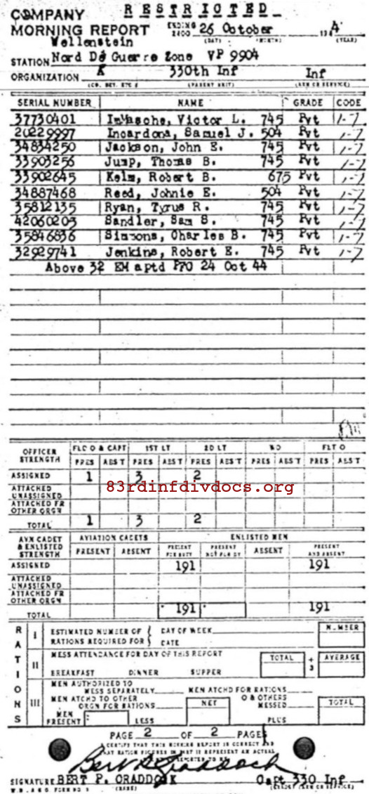 | Unit | A Company, 330th Infantry Regiment, 83rd Infantry Division |