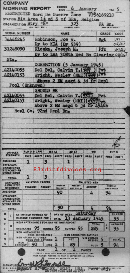 | Unit | 323rd Field Artillery Battalion, 83rd Infantry Division |