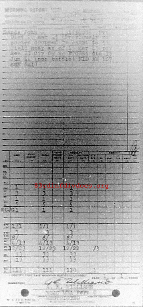 | Unit | 322nd Field Artillery Battalion, 83rd Infantry Division |