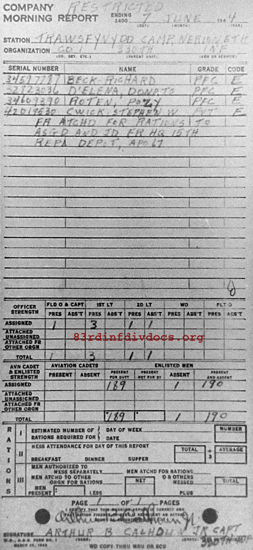 | 1944-06-06 | PFC | Attached as of June 6, 1944 for rations | I / 330 | view page | |