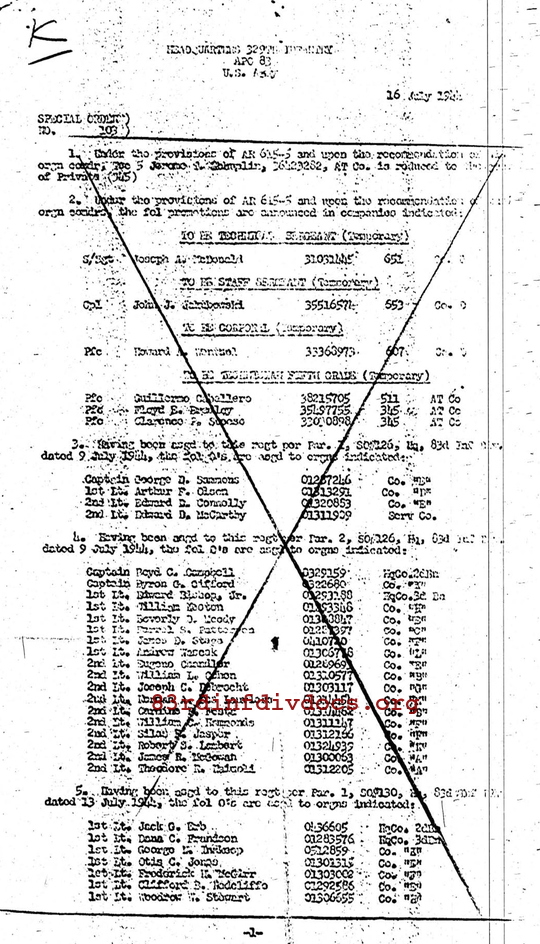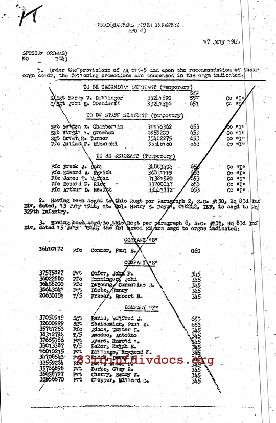 | 1944-07-19 | PVT | Promoted to Private First Class as of July 19, 1944 | K / 329 | view page | |