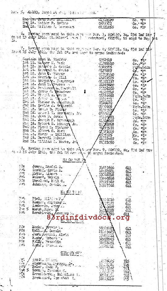 | Unit | K Company, 329th Infantry Regiment, 83rd Infantry Division |