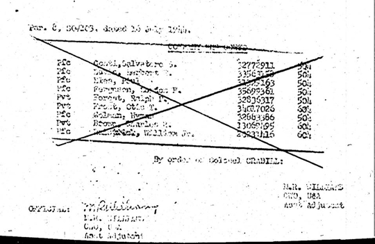| 1945-01-26 | PFC | Severely wounded in action and transferred to 104th Evacuation Hospital on August 8, 1944, which corrects MR of August 8, 1944 | 504 | K / 329 | view page |