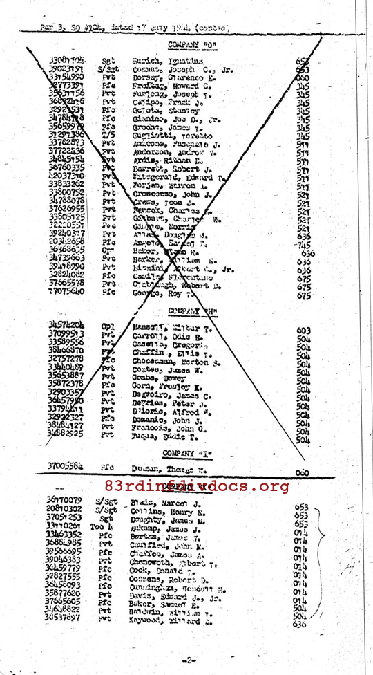 | 1944-07-16 | PVT | Assigned and joined from unknown unit as of July 16, 1944 | 504 | K / 329 | view page |