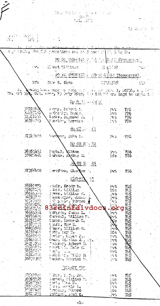| Unit | F Company, 329th Infantry Regiment, 83rd Infantry Division |