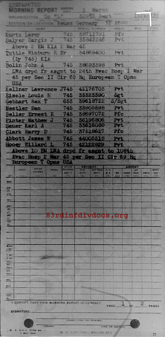 | 1945-03-03 | PVT | Killed in action on March 3, 1945 | 745 | L / 329 | view page |