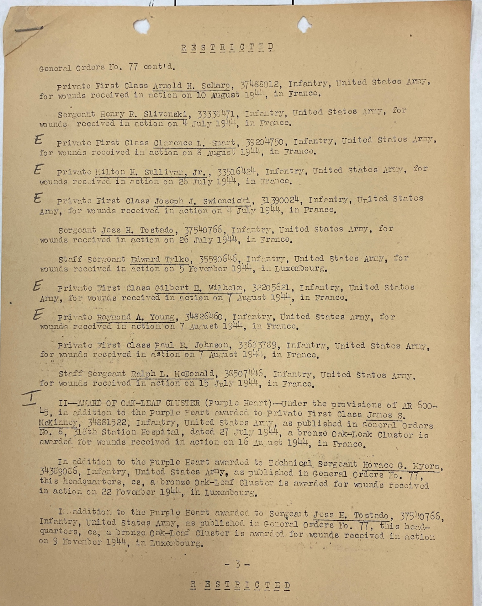 | Listed in 330th Infantry Regiment Casualties and Awards as wounded in action as a Private First Class in 330. | 43 | ||||