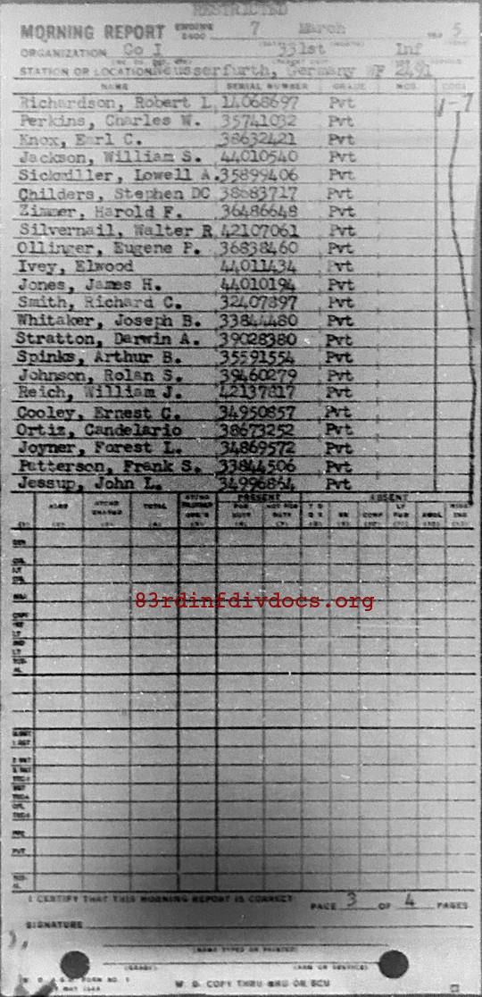 | Unit | 331st Infantry Regiment, 83rd Infantry Division |