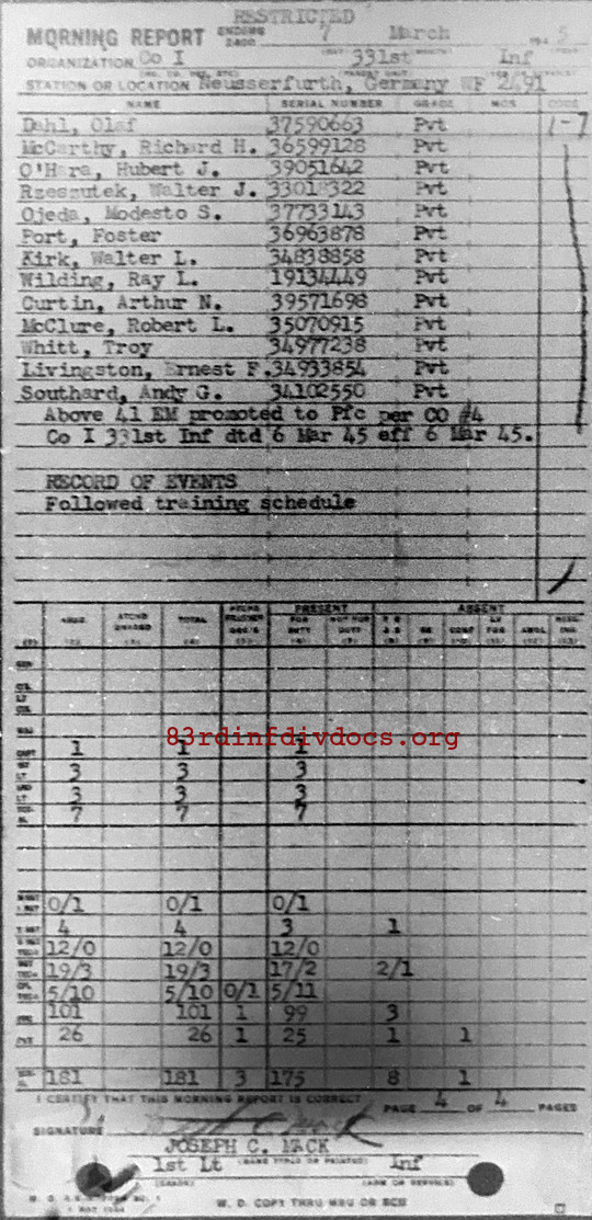 | 1945-03-07 | PVT | Promoted to Private First Class as of March 6, 1945 | I / 331 | view page | |