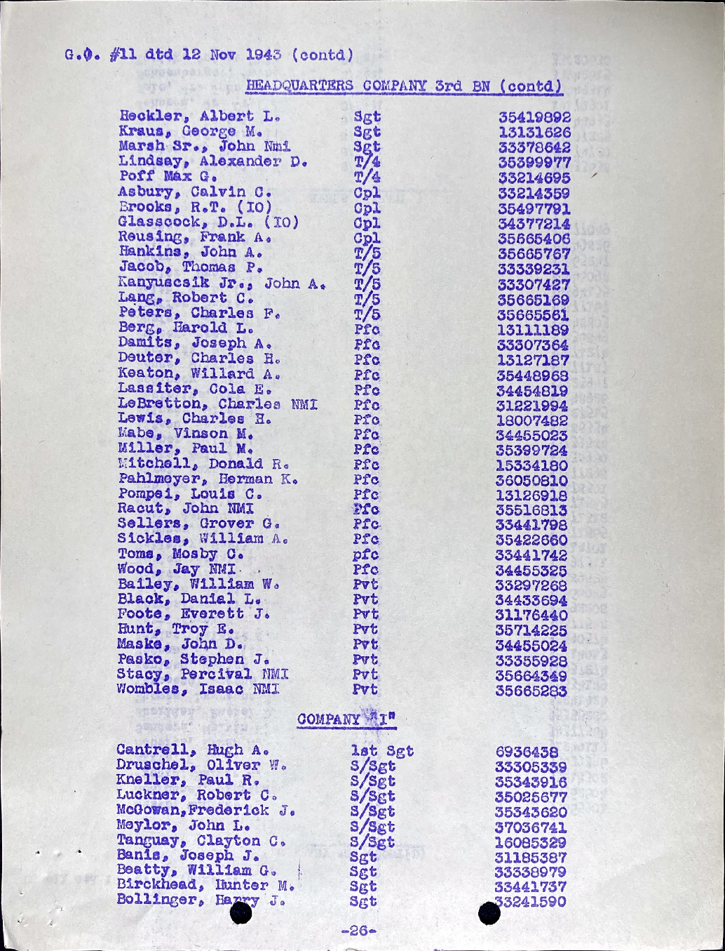 | Unit | I Company, 329th Infantry Regiment, 83rd Infantry Division |