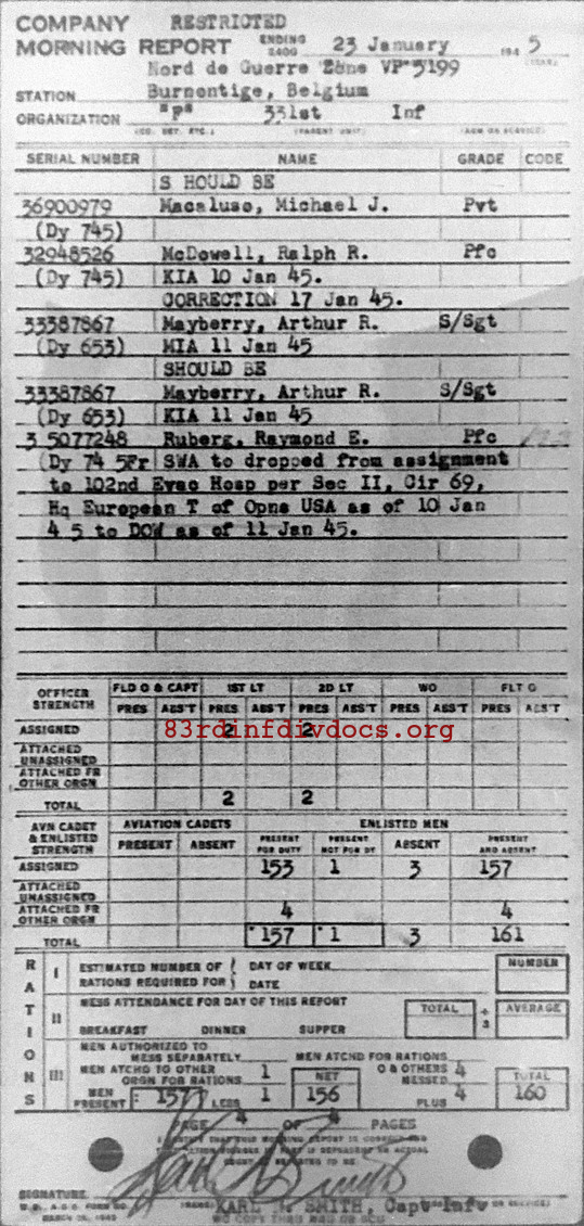 | 1945-01-23 | PFC | Died of wounds on January 11, 1945 | 745 | F / 331 | view page |