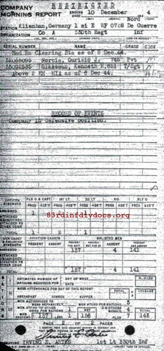 | Unit | A Company, 330th Infantry Regiment, 83rd Infantry Division |