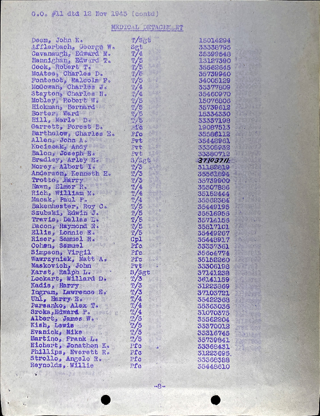 | Unit | Medical Detachment, 329th Infantry Regiment, 83rd Infantry Division |