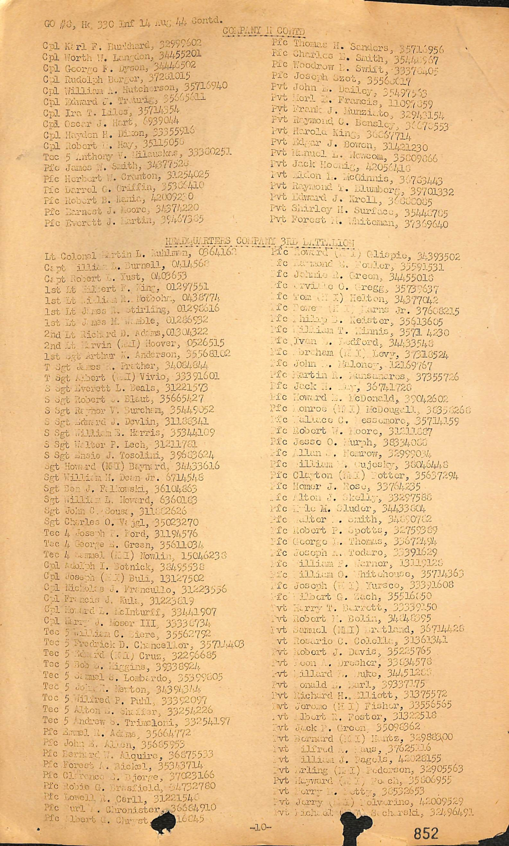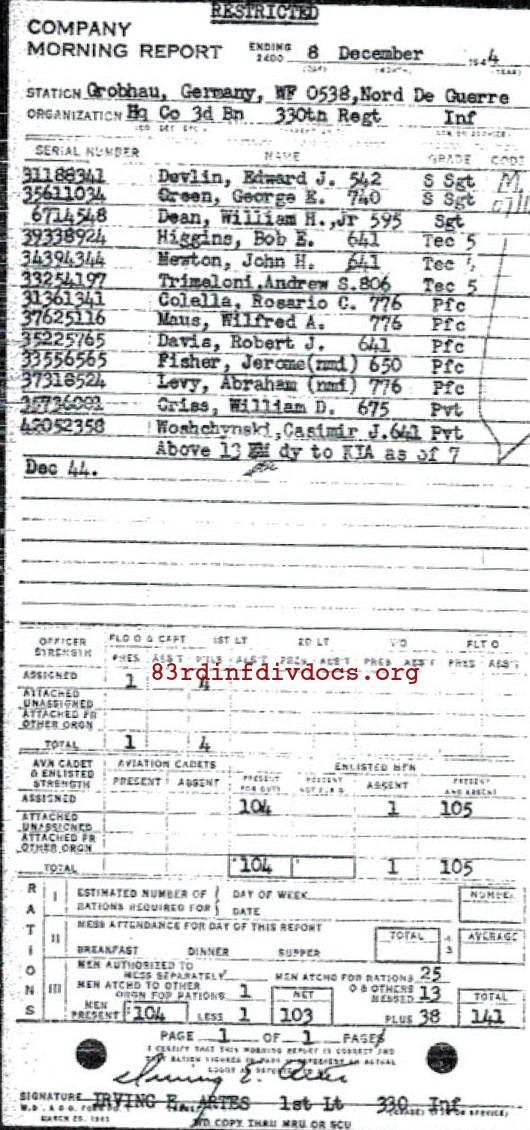 | Listed in 330th Infantry Regiment Casualties and Awards as killed in action as a Private First Class in 330. | 3 | ||||