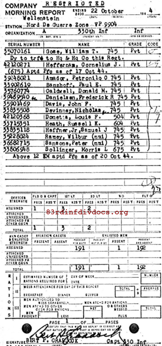 | Unit | A Company, 330th Infantry Regiment, 83rd Infantry Division |