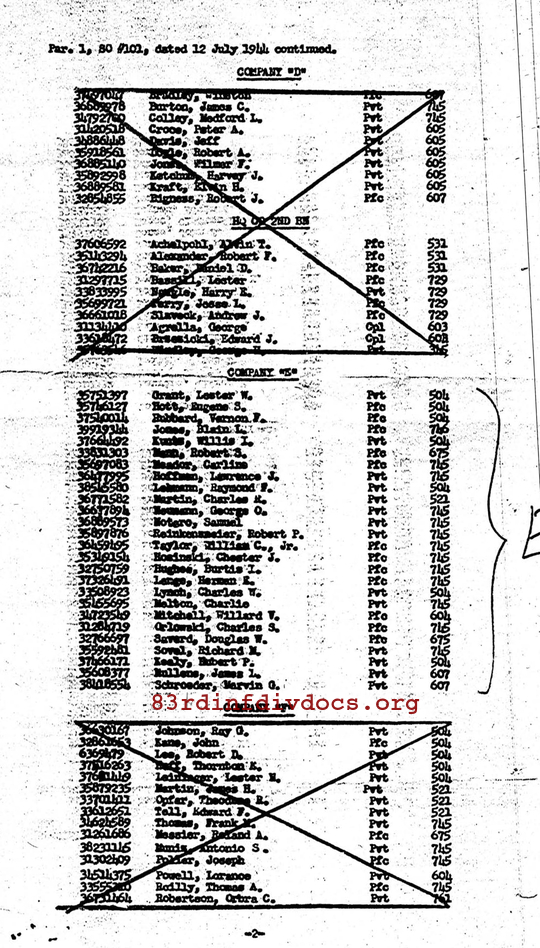 | Unit | E Company, 329th Infantry Regiment, 83rd Infantry Division |
