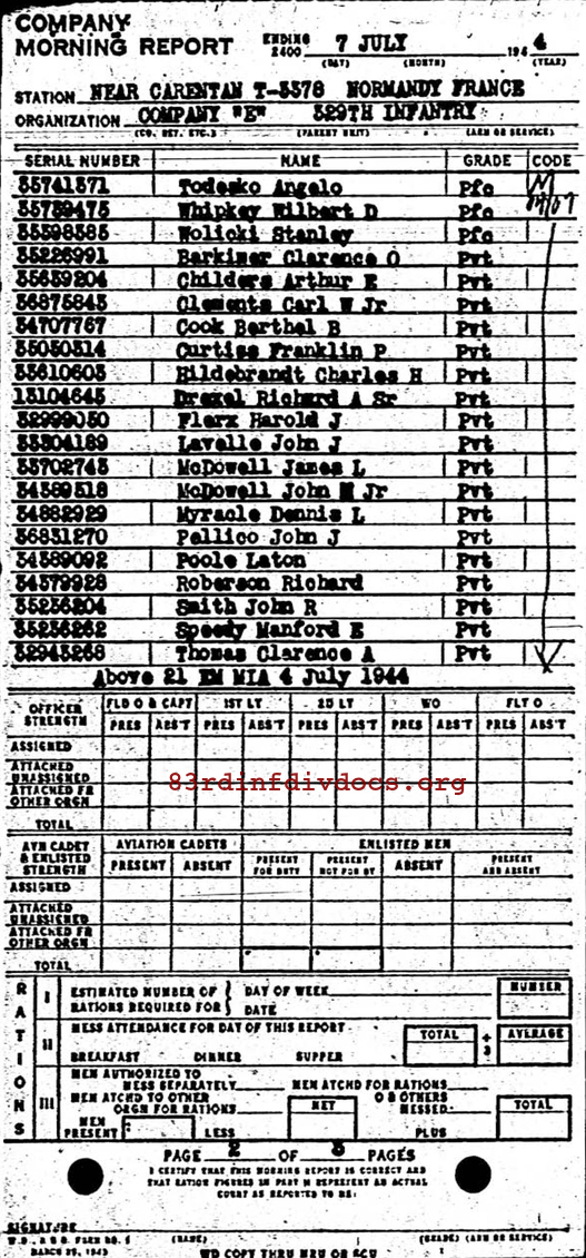 | 1944-07-07 | PFC | Missing in action as of July 4, 1944 | E / 329 | view page | |