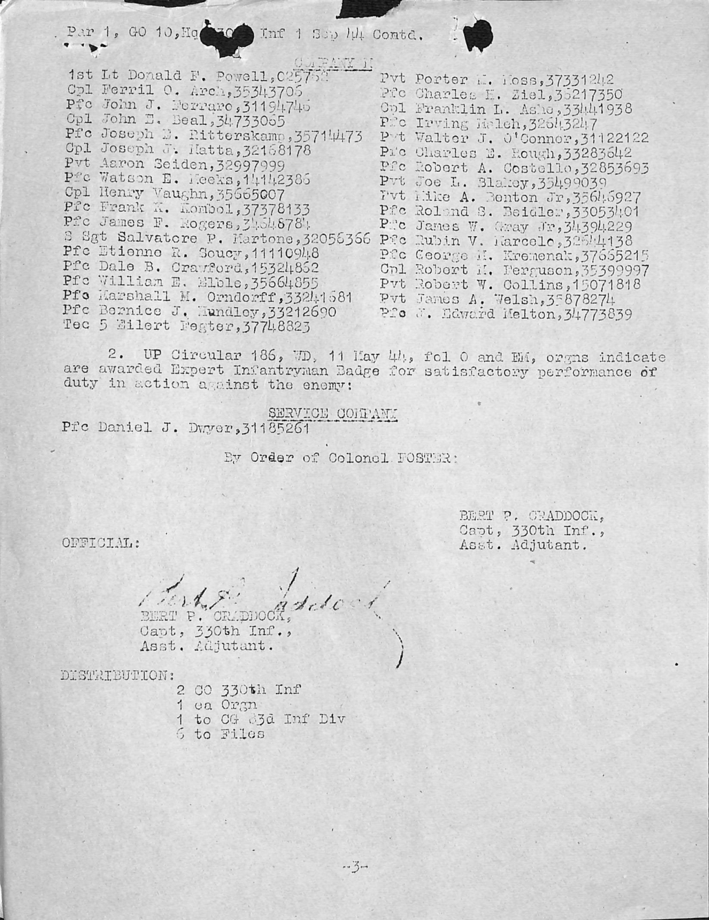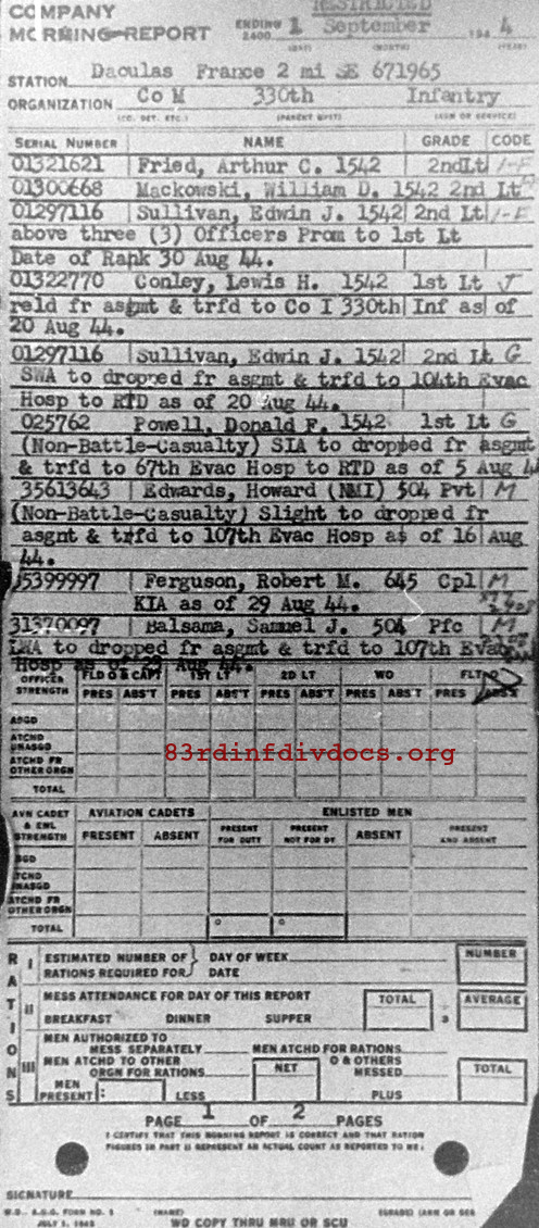 | Unit | M Company, 330th Infantry Regiment, 83rd Infantry Division |