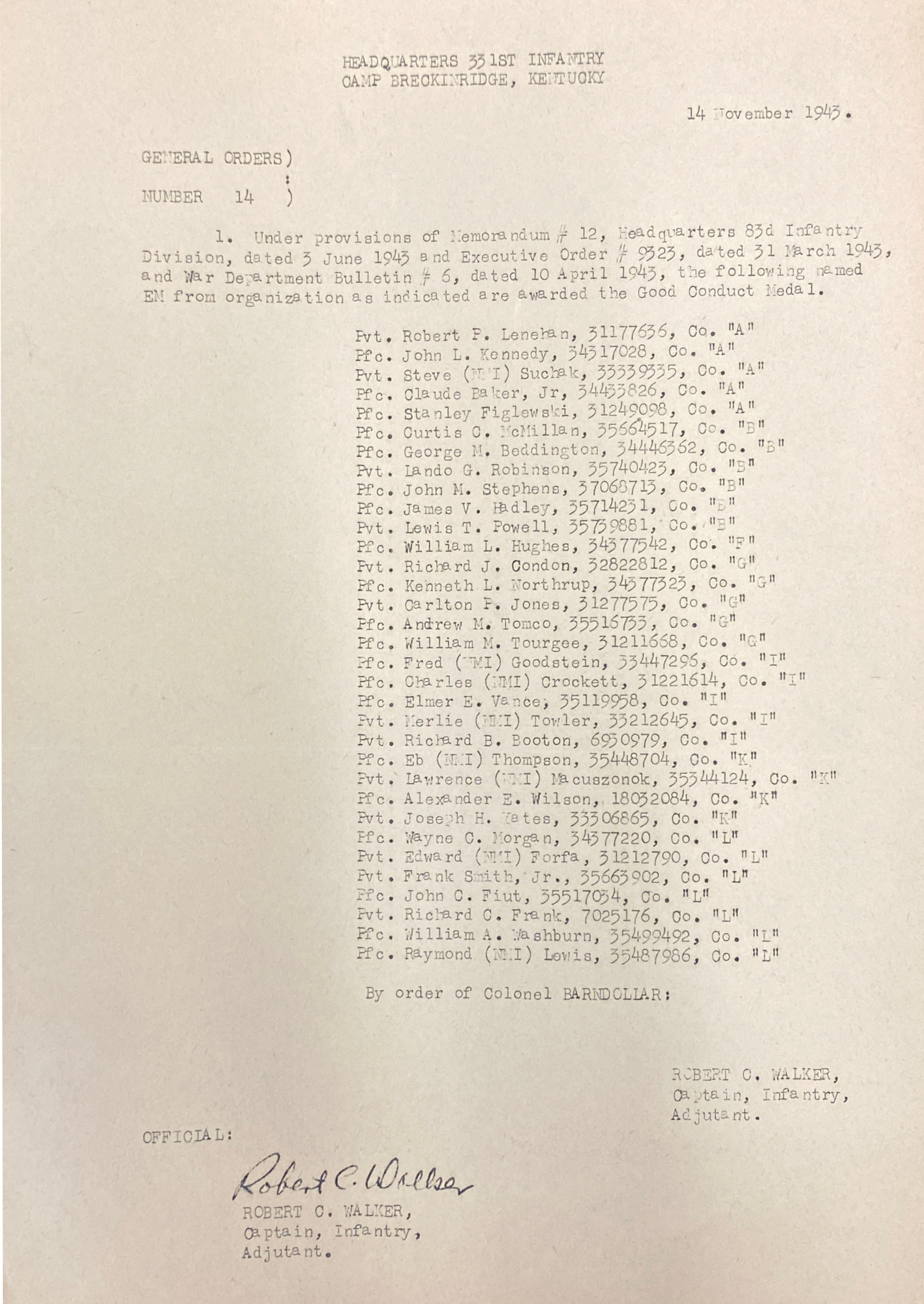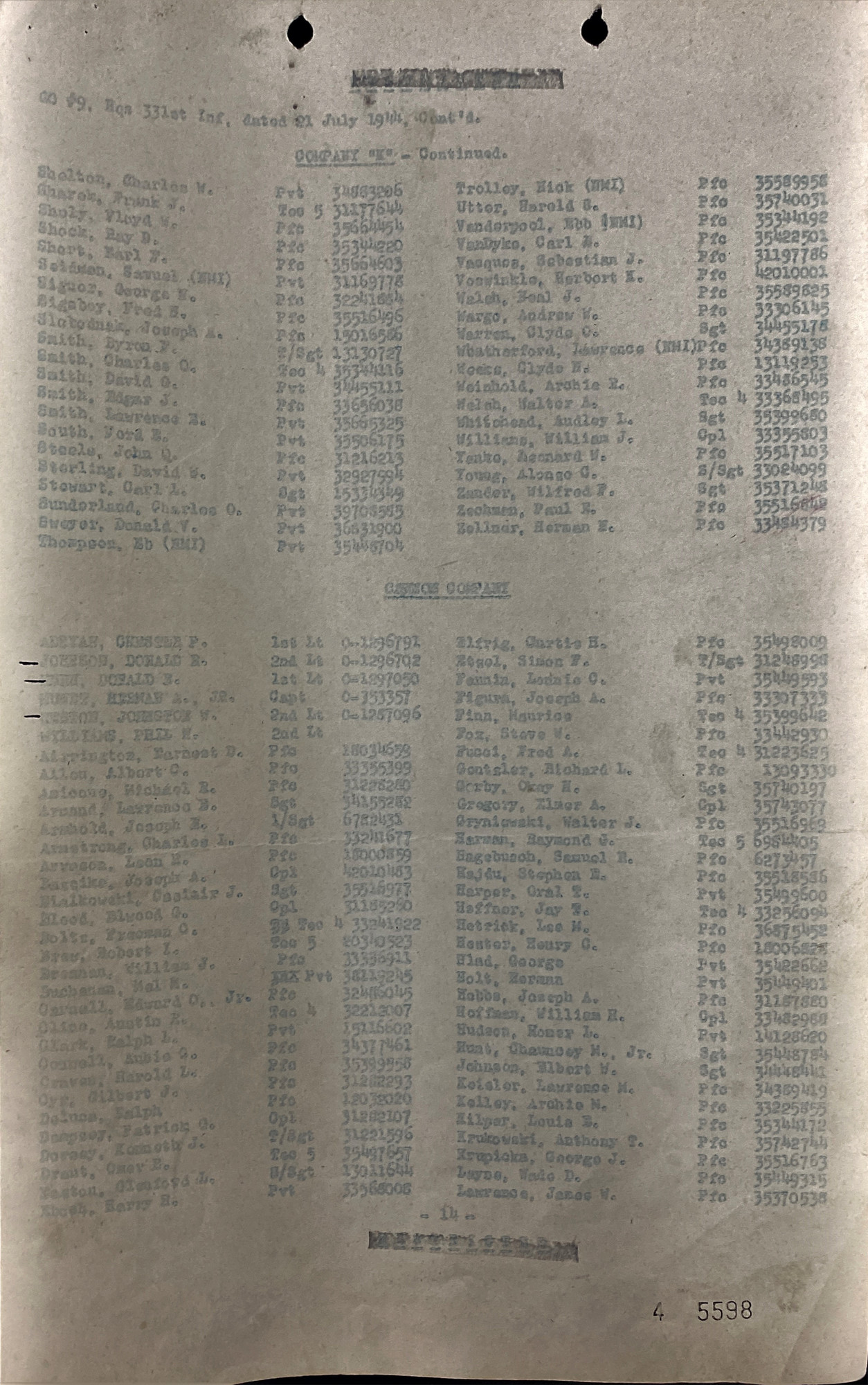 | Unit | 331st Infantry Regiment, 83rd Infantry Division |